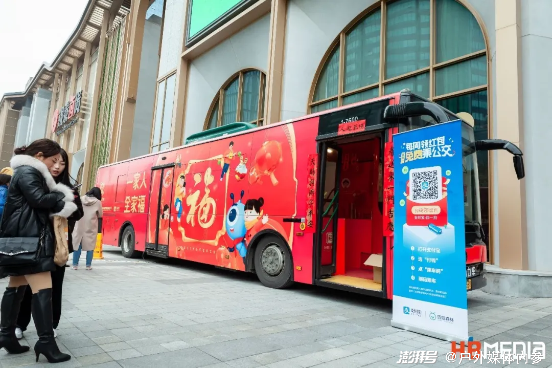 2020年春節(jié)前夕,杭州巴士傳媒集團聯(lián)合杭州公交集團、支付寶,為杭州市民送上了溫暖的新春禮物——全國首個掃福公交,分別在杭州武林銀泰門口、阿里巴巴西溪園區(qū)落地。活動現(xiàn)場人流爆滿,市民們紛紛掃福、送福,熱情高漲。1月13日-2月13日期間,杭州公交還有五輛福氣公交在路面行駛,上車就能掃福,成為了杭州市民的獨家福利。